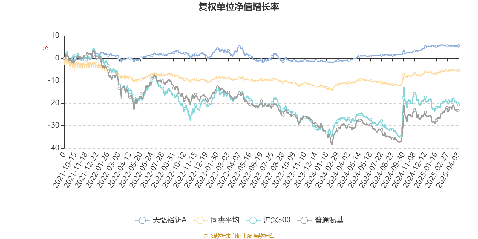截至4月3日,天弘裕新A近三个月复权单位净值增长率为0.05%,位于同类可比基金534/664;近半年复权单位净值增长率为3.15%,位于同类可比基金151/664;近一年复权单位净值增长率为6.52%,位于同类可比基金186/664;近三年复权单位净值增长率为5.63%,位于同类可比基金271/587。